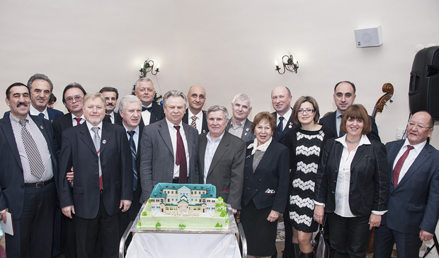 Представители национальной общественности, экс-директора Дома национальностей, сотрудники Дома у праздничного торта в честь 15-летия МДН. Фото: автор