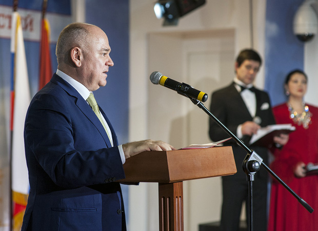 Ведущие вечера — народные артисты России И.Ю. Егорова и А.М. Каминский — объявили праздник открытым. Торжество началось исполнением государственного гимна России.