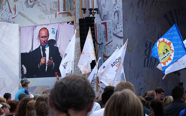 «Сердечно поздравляю вас с большим праздником — Днём славянской письменности и культуры. В этот день мы чтим память выдающихся просветителей — братьев Кирилла и Мефодия, которые внесли огромный, неоценимый вклад в развитие нашего языка, которые создали замечательный базис, гуманитарную основу, объединяющую все славянские народы. Но начавшись как религиозная традиция, этот праздник приобретает все большее и большее общенациональное значение, гражданское значение, объединяющее все народы нашей страны. На наших глазах родилась замечательная традиция хорового пения, звучат песни, которые объединяют всю нашу великую Россию, потому что в этих песнях история нашего народа, культура нашего народа, душа нашего народа», — заявил с большого экрана глава государства.