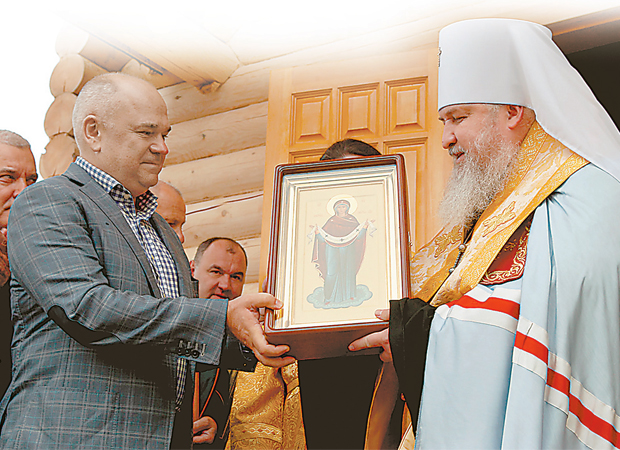 Ю. Артюх передаёт дар от Москвы храму-«новосёлу». Фото: dmsnpiro.mos.ru