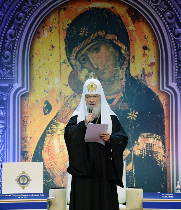 В ходе форума Святейший говорил о ситуации на юго-востоке Украины: «Переживания моего сердца и горячие молитвы с народом Украины, где общественно-политические противоречия и злая человеческая воля привели к братоубийственной вражде на Донбассе, которая приносит неизмеримые страдания в первую очередь мирным жителям. И сегодня вновь обращаю к сторонам этого конфликта свой призыв: братья, остановитесь, оставьте злобу и взаимные обиды, примиритесь!» Ко всем чадам Русской православной церкви Патриарх Кирилл обратился: «Прошу, не оставляйте усердной молитвы об Украине!» Когда Патриарх произнёс эти слова в Кремле, сидящий рядом мужчина, как оказалось, врач, вздохнул: «Как прав Святейший - каждый в силах молиться. Но вот молимся ли мы усердно?»