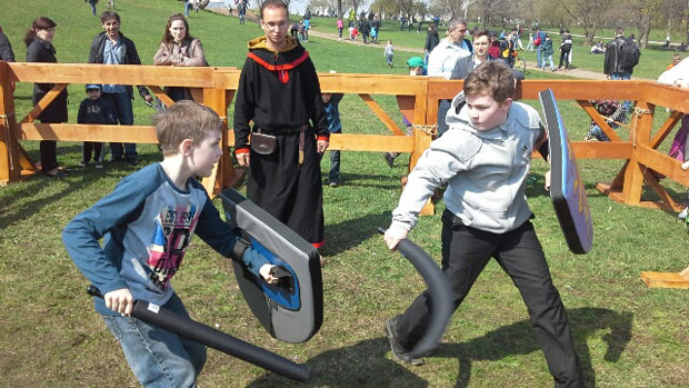 «Мама, папа! Я хочу быть рыцарем! Здесь всё пахнет как мой яблочный сок!» Пока родители удивляются, 6-летний малыш, размахивая мечом, поясняет: «Тут, на рыцарском турнире, сплошное железо. Как в моём яблочном соке! Это ж сколько пользы!» С учётом того, что турнир Святого Георгия в «Коломенском» посетили за два дня 50 тыс. человек, пользы действительно вышло много.