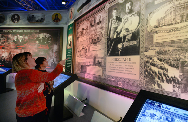 Эта история называется «Романовы» и занимает в Историческом парке всё правое крыло павильона. За 300 лет правления Романовых Россия бурно развивалась: были освоены Дальний Восток и Сибирь, на карте нашей страны появились десятки новых городов, в том числе Санкт-Петербург; было отменено рабство (в России оно называлось крепостным правом), а наука и культура подарили миру великие имена Пушкина, Лобачевского, Менделеева, Чайковского и многих других учёных и художников. И в тот момент, когда страна была на очередном витке подъёма, трагически закончилась история Романовых.