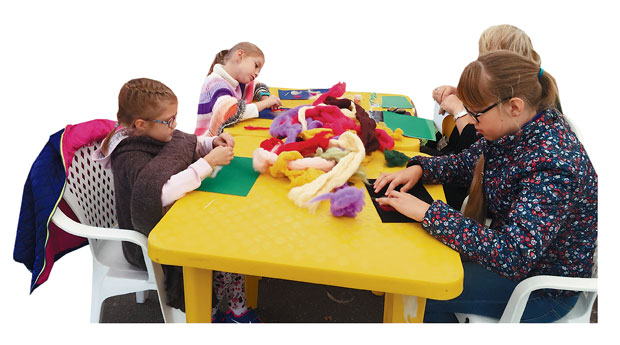 Дети старались успеть обойти все площадки. На одной из них девочки вырезали цветы и делали из войлока прелестных кукол. Неподалёку играли только мальчишки: они выбирали спортивные соревнования, где можно было проявить сноровку.