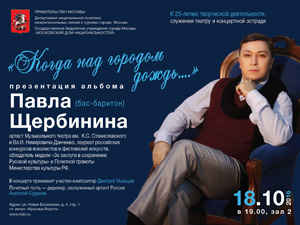 Альбом «Когда над городом дождь» выходит в свет к 25-летию служения театру и концертной эстраде певца Павла Щербинина. Среди авторов произведений записанных на диске выдающиеся мастера композиции и поэзии: А.Бабаджанян, Я.Френкель, А.Клевицкий, К.Кальварский, Л.Рубальская, Д.Мальцев, М.Минков. Со многими авторами Щербинин работал и работает лично. В основу диска легло пропагандирование вокально-лирической темы композиторов мелодистов современников.