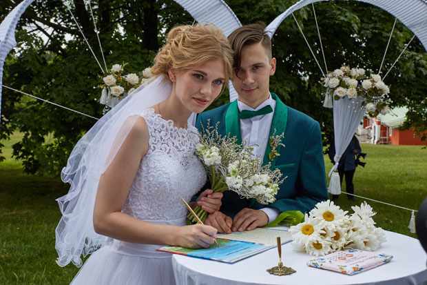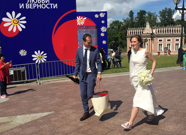 В этот раз в Царицыно марш Мендельсона прозвучал для Дмитрия и Любови Линцовых, Рушании Хусяиновой и Алексея Мордакина, Влада Миркоса и Марии Зиминой, Янины Лебольд и Дмитрия Лобанова, Натальи Гроздовой и Сергея Кулины, Станислава Шелестова и Марии Щербининой, Светланы Медведевой и Кирилла Токарева.