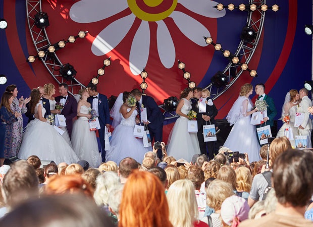 Грандиозная акция массового бракосочетания состоялась в День семьи, любви и верности