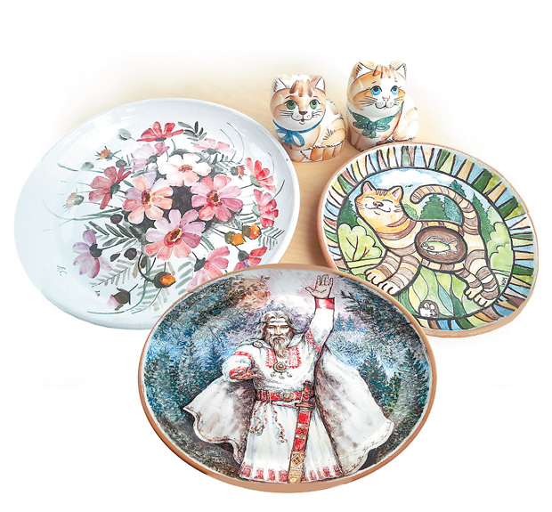 Цветы, котики и персонажи мифов «живут» на красивых тарелках. Фото: автор