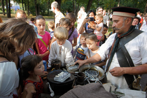 Позже праздник расплескался по прилегающим к обители улицам и бульварам, превратившись в масштабный праздник народной культуры. Мастера учили горожан звонить в колокола, чему особенно радовались дети. И пусть перезвон был явно не малиновый, но громкий, задорный и от души. Чуть поодаль настоящий кузнец, практически Левша, отливал миниатюрных солдатиков. Мальчишкам и девчонкам доверили самое важное - раздувать меха старинного горна. Расплавленный металл разливали по формам, а затем каждый получал на память о празднике своего солдатика, ещё тёплого и сияющего. В ловких пальцах умельцев обычная глина превращалась в сказочных зверей, тут и олени, и волки, и заморские птицы. А вот малышня создавала в основном неизвестных науке фантастических существ - крылатых и хвостатых, а некоторые - даже космических пришельцев, а что - они художники и так видят.