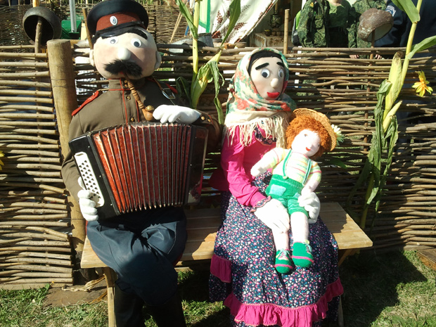 С историей казачества знакомили участники «Станичной ярмарки». На ней было представлено множество изделий народных промыслов, предметов казачьего быта. Шорное ремесло, чеканка монет, гончарное дело, изготовление украшений из смолы, резьба деревянных форм для пряников - всё показывали, всему терпеливо обучали в шатрах Краснодарского края, Московской, Саратовской, Самарской, Орловской, Тульской областей, Кабардино-Балкарии и др.