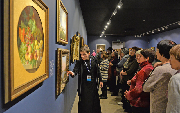 Художественные коллекции региональных музеев не менее уникальны. Сформированные усилиями нескольких поколений коллекционеров, музейных работников, художников и их наследников, они преодолевают стереотипные представления о провинциальных музеях. К примеру, Псковский историко-архитектурный и художественный музей-заповедник привёз полотна Кустодиева, Боровиковского, Шишкина, Серова. Омский областной музей изобразительных искусств им. Врубеля – Репина и, конечно, Врубеля, Саратовский художественный музей им. Радищева – Тропинина, Сурикова и Петрова-Водкина, Нижнетагильский музей изобразительных искусств – Серебрякову, Государственный художественный музей Алтайского края – Саврасова и Коровина, Ивановский областной художественный музей – Левитана, Пермская художественная галерея – Крамского. Картины распределены по залам, исходя из времени их создания: искусство первой половины XIX в. или век XX. Но в центральном зале холсты объединила тема «Россия». Эти полотна создали образ страны с необъятными природными пространствами и тысячелетними традициями. Беспрецедентная по масштабу экспозиция организована в рамках XVII церковно-общественной выставки-форума «Православная Русь – к Дню народного единства». 280 экспонатов представил 51 музей из 39 регионов, показав тем самым нерушимое единство культурного пространства страны. И у вас ещё есть несколько дней, чтобы успеть её осмотреть: «Сокровища музеев России» останутся в Манеже до 25 ноября.