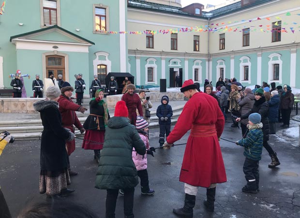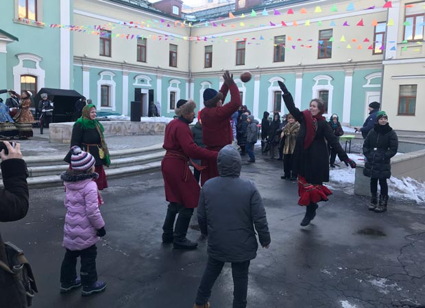 «Русские подвижные игры с предметами и множество забав мы приготовили для гостей Московского дома национальностей. Из традиционного: русмяч и кила, борьба за вороток, перетягивание палки, стрельба из лука по бабкам, клюшкование. А для того, чтобы согреться обязательно поплясать и провести состязание по частушкам», — раскрывает секреты Илья, представитель «Федерации исконных забав и этноспорта России». По его словам, каждый желающий может перенестись во времени и прочувствовать дух настоящего языческого праздника. В их сценарии все максимально реалистично. «Народное творчество доступно всем, поэтому от участников специальной подготовки не требуется», — продолжает он. Федерация активно участвует в проведениях различных национальных мероприятий не только в столице, но и за ее пределами.