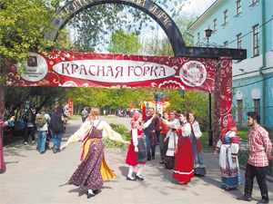 Так Москва ещё не праздновала Красную горку. В свежей зелени Екатерининского парка мелькали красные русские сарафаны фольклорного коллектива, со сцены пели на башкирском, а в гигантском казане размешивал таджикский плов повар Абдурахмон.