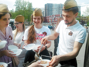 После концерта волонтёры церкви угощали гостей солдатской кашей