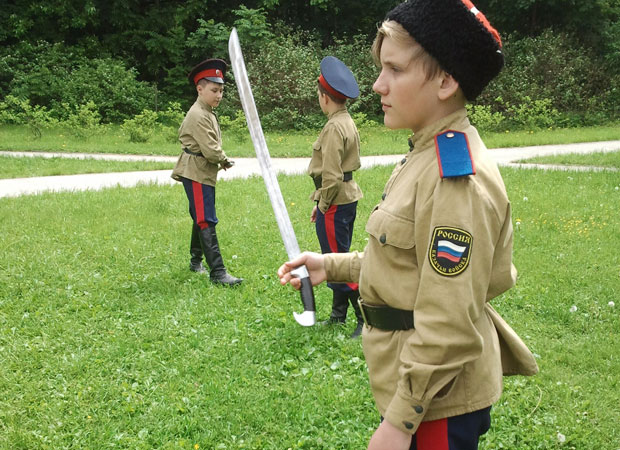 Казачата на деревянных конях — малыши. Только-только выпустились из детского сада «Ёлочка» г. Мытищ. Начиная со средней группы воспитанников знакомят с тем, чем живут казаки — от предметов одежды до значения слова «любо». Детский сад сотрудничает с Мытищинским хуторским казачьим обществом. Взрослы казаки частые гости у ребят, приходят на праздники и на занятия. Кстати, детские металлические шашки преподнесли как раз они: пластиковыми же играть неинтересно. У «Ёлочки» нет общей казачьей направленности, но в качестве дополнительного образования сотрудничество с казаками зарекомендовало себя отлично, оно длится более семи лет. Перешедшим в школу детям казаки предлагают продолжить получение знаний в военно-патриотическом центре «Граница».