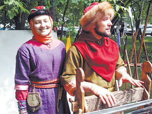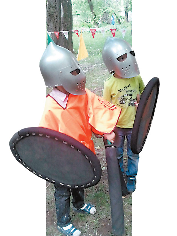 В парковой зоне праздник переносил собравшихся в далёкое прошлое, помогала в этом артель «Московия». Её члены, реконструкторы, изучают Русь XIII–XIV вв. и, в частности, состязательную культуру, воспитание мужчины. Состязания – и активные, и в виде настольных игр. Малыши с криками носились в военном облачении. Ребята постарше надолго усаживались за деревянные столы и, освоив правила игры в старинные шахматы, устраивали себе гимнастику для ума. А неподалёку руководитель артели Виталий Егоров лихо демонстрировал то одно древнее оружие, то другое: «Это очень удобная штуковина. Меня оттолкнёт, я упаду, но останусь жив». У 14-летней Сони жгучий интерес одновременно к оружию и истории: разобравшись, как крестьянский сучкорез становился оружием победы, взялась за алебарду.