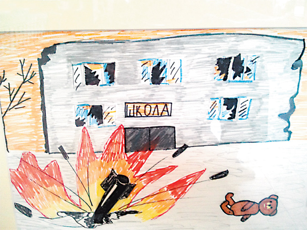 Второклассница рисует взрывы, а первоклассница подписывает свой пейзаж «Наше лето убила война»