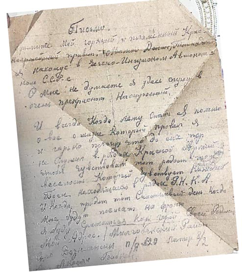 Сегодня, к сожалению, не у каждой семьи сохранились какие-то фотографии или письма военных лет. У нас сохранились. Помню, как бабушка и мама плакали, доставая из коробки из-под обуви хранящиеся там треугольники с фронта. Их писал брат бабушки – Бабкен. Рассказывали, что он был очень образованным, с детства много читал, пряча книги под одеялом. А уехав на фронт, писал трогательные письма, иногда и на русском языке. Эти маленькие пожелтевшие листки-треугольники и сейчас невозможно читать без слёз. Одно письмо из госпиталя в Моздоке, где он лежал раненый. В нём он просит за него не переживать: «Жду не дождусь выздоровления, чтобы вернуться в строй и нанести сокрушительный удар по фашистам». Знаете, а ведь это было последнее его письмо... Он, как и каждый второй армянин-фронтовик, не вернулся с фронта.