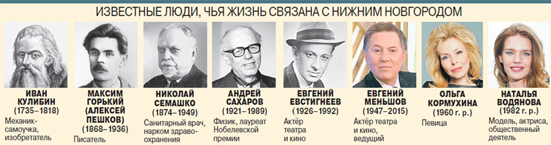 ✒ В 1932 г. город переименовали в Горький. В 1990 г. вернули историческое название. Сейчас Нижний Новгород – шестой по численности мегаполис России.