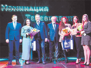 Валдис Пельш принимает поздравления с победой. Он был автором идеи, ведущим и продюсером фильма Первого канала «Русский Север. Дорогами открытий», который победил в номинации «Телевидение».