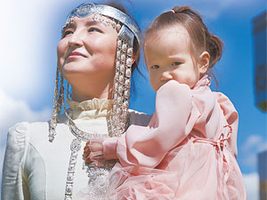 Если разбираешься в символах, то «читаешь» их и в орнаментах национальных нарядов, в которые были одеты многочисленные московские и якутские якуты. Сахая Колодезникова приехала на праздник из Республики Саха. Костюм богато украшен. Похоже, очень тяжёлый. «Да, тяжёлый, но красота требует жертв», – уверена она. «Я прожила в Якутии 35 лет, – услышала наш разговор москвичка Галина. – В каждой семье хранятся костюмы и украшения, там не утеряна традиция надевать их по праздникам. Тяжесть неимоверная – до 7 кг доходит».