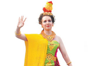 Участница ансамбля станцевала в традиционном костюме жителей Бали