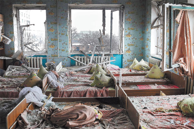 Артиллерия нацистов сознательно бьёт по гражданским объектам на Украине. Фото: предоставлено организаторами выставки