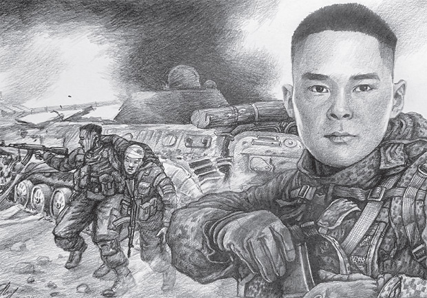 Портреты военнослужащих и добровольцев выполнены углём на бумаге