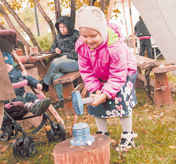 Маленькая участница фестиваля решила попробовать отчеканить для себя монетку на память о празднике Покрова. Фото: Александр Иванов