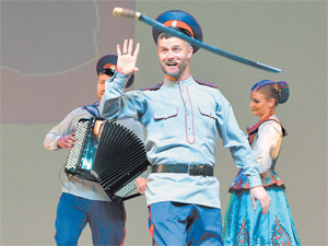 Настроение фестивалю задали артисты Московского казачьего хора: исполнили любимые хиты и продемонстрировали владение шашкой.