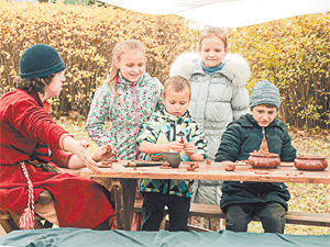 Резвые подмастерья сновали с деревянными тачками между прилавками, плотники строгали скамьи, кузнец раздувал мехи, пряхи пряли, горшечник лепил сосуды, обувщик шил по древним лекалам кожаную обувь, а дети играли в лапту. Атмосфера древнерусского городка, соответствующие одежды и говор участников мероприятия – всё дышало стариной.