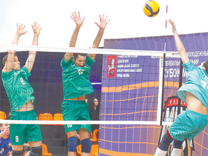 Команда «Агидель» РОО Курултай башкир Москвы (слева) на пути к чемпионству встретилась с несколькими сильными соперниками. Например, с командой «ТатарчаВолейбол» Национального конгресса татар (справа).