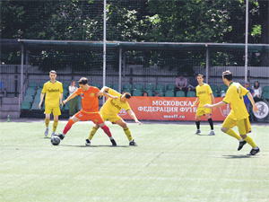 9 июня состоялись четвертьфинальные матчи соревнований по футболу между любительскими командами национально-культурных объединений и землячеств Москвы в формате 7+1. В упорной борьбе определились четыре участника полуфинальных матчей, которые пройдут 16 июня: «САР-Арарат» (Московское городское отделение Союза армян России), «Русдойч» (Федеральная национально-культурная автономия российских немцев), «Женис» (Казахская национально-культурная автономия в Москве) и «Алания» (Московская осетинская община). Примечательно, что эти команды уже доходили до стадии полуфинала в прошлом году. Победитель турнира определится 22 июня. На фото — матч между командами «Русдойч» (в жёлтой форме) и «Чувашия» (Общество чувашской культуры), он завершился со счётом 3:1 в пользу «Русдойч».
