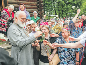 Богослужение прошло под открытым небом в мемориальном комплексе «Бутовский полигон» – месте массовых расстрелов и захоронения жертв политических репрессий, в том числе многих священнослужителей и мирян, прославленных ныне новомучеников. Митрополит Павел вознёс молитву о Святой Руси.