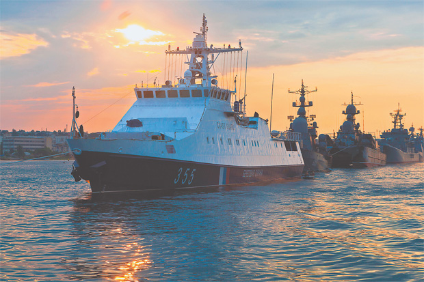 Противодиверсионный катер П-355 «Юнармеец Крыма» в Севастопольской бухте. Фото: Предоставлено организаторами выставки