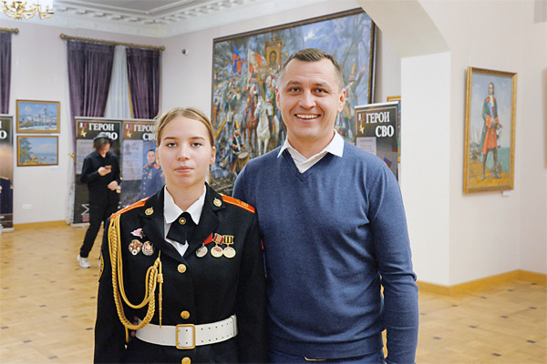Вообще в тот день на праздник собралось много представителей военных династий. Например, послушать патриотический концерт пришёл советник директора по воспитательной работе Преображенского кадетского корпуса Ринат Кайбелев вместе с дочерью Ксенией – кадетом корпуса.