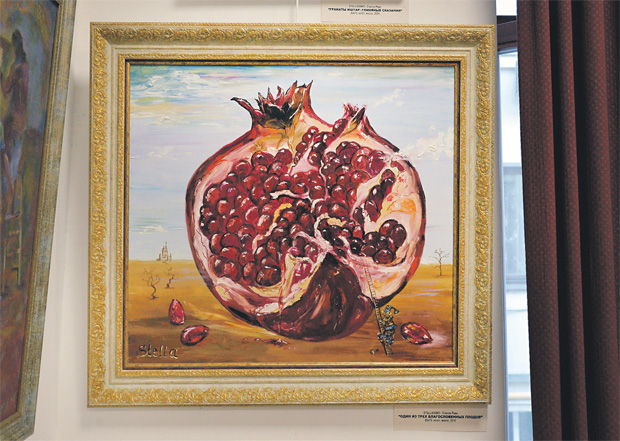 Стелла Реан – ещё одна участница выставки. «У меня здесь две работы: «Гранаты», и «Воспоминание об Ассирии» – мои представления о том, как всё было устроено на нашей земле, – говорит Стелла и добавляет: – У ассирийцев множество важных традиций. Главная из них – почитание родных и близких, старшего поколения. Даже еда, готовящаяся к Новому году, связана с прошлым. Например, на выставке я узнала, что пахлава на самом деле национальное ассирийское блюдо. Раньше его давали воинам в походы».
