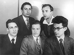 Композиторский факультет Московской консерватории. Выпуск 1940 года. Слева направо, сидят: Владимир Навоев, Серафим Туликов, Михаил Магиденко. Стоят: Грачик Меликян, Николай Пейко.