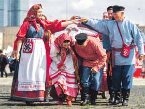 Весь день на Поклонной горе выступали фольклорные коллективы, создавая неповторимую атмосферу праздника многонациональной Москвы.