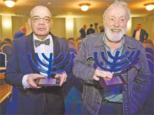 Константин Райкин и Юрий Норштейн с полученными наградами.