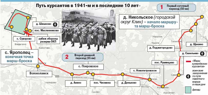 Двое суток, 6 и 7 октября, курсанты военных училищ, участники военно-патриотических клубов, кадеты, юнармейцы и волонтёры преодолевали пешком путь от деревни Никольское в Клину до села Ярополец в Волоколамске. В 10-й раз акцией «Марш кремлёвских курсантов», которая проводится при поддержке Департамента национальной политики и межрегиональных связей города Москвы, молодёжь почтила подвиг Отдельного курсантского полка: в 1941-м молодые офицеры прошли 85 километров, чтобы занять оборону на Волоколамском оборонительном рубеже и не подпустить фашистов к столице.