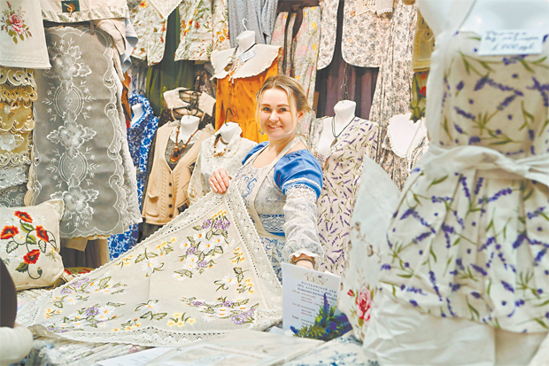 Льняные скатерти с ручной вышивкой и кружевом, созданные мастерами в традиционных техниках. Фото: Игорь Харитонов