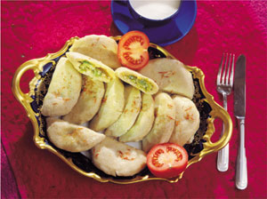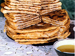 При подаче нарезать на 4 — 8 частей и полить растопленным сливочным маслом.В качестве начинки для «чепалгаш» используют также и картофель.