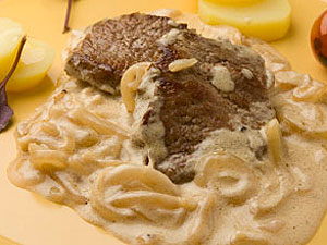 ЧТО НАДО: говядина - 800 г, 2 средние луковицы, ржаной хлеб - 150 г, топлёное масло - 2 ст. л., соль, перец, лавровый лист по вкусу.