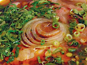 Надо: 600 г баранины (грудинки), 1 л настоящего хлебного кваса, 50 г риса, 50 г зелёной стручковой фасоли, 2-3 помидора, 1 сладкий перец, корень петрушки, ½ головки репчатого лука, 2 зубчика чеснока, 1 небольшая морковь, 200 г сметаны, укроп, петрушка, красный молотый перец, соль.