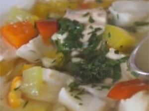4. Провариваем, подсолив по вкусу, в течение 10 минут, затем добавляем полстакана сливок, с десяток веточек рубленого укропа, десяток горошин перца и лавровый лист.