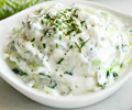 3. В салатницу положить йогурт, отжатую огуречную массу, растёртый чеснок, соль, уксус, оливковое масло и тщательно перемешать. Несколько часов подержать в холодильнике - и кали орекси!