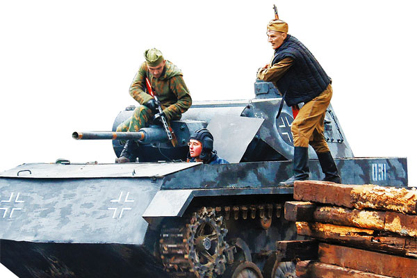 Наш корреспондент, побывавший на спектакле, был впечатлён не меньше, чем школьники, которых привели родители для знакомства с живой историей. Действо шло всего полчаса, но за это время актёры в исторической форме успели показать, как советские солдаты повязали «языка», рассекавшего на мотоцикле, и как они захватили гитлеровского офицера на штабной машине, и перестрелку, и рукопашный бой. А завершился спектакль очень эффектно - танковым тараном - не потешным, а самым настоящим. Две огромные машины с лязгом и скрежетом столкнулись и загорелись, а от них прочь побежали объятые пламенем немецкие солдаты.