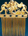 Днепра возле города Никополя, раскопанный сто лет назад экспедицией знаменитого археолога Николая Веселовского. Золотой гребень из Солохи стал украшением коллекции скифского золота в Эрмитаже.