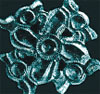 Золотая подвеска к серьге «царицы» состоит из колец, обмотанных тонкой спиральной жилкой из тянутого золота. Это изделие требует от ювелира такой точности движений, которая невозможна без регулировки дыхания, способного порвать тончайшую нить.